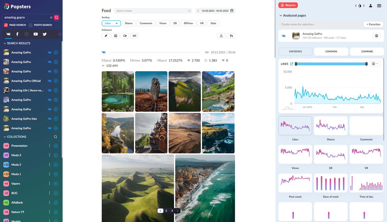 Popsters helps to compare, get stats and measure the efficiency of posts of any social page that you are interested in